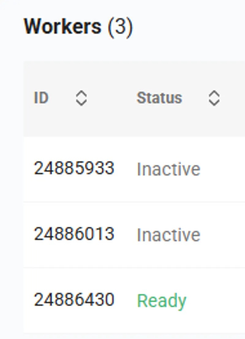 Now that we have our Endpoint, we can create a Workergroup with the template we prepared in step 1. Once the Workergroup is created, the serverless engine will automatically find offers and create instances. This may take ~10-60 seconds to find appropritate GPU workers.