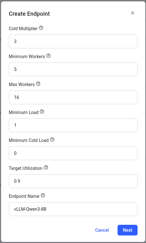 | Endpoint Name | vLLM-Qwen3-8B | Choose a descriptive name for your endpoint |